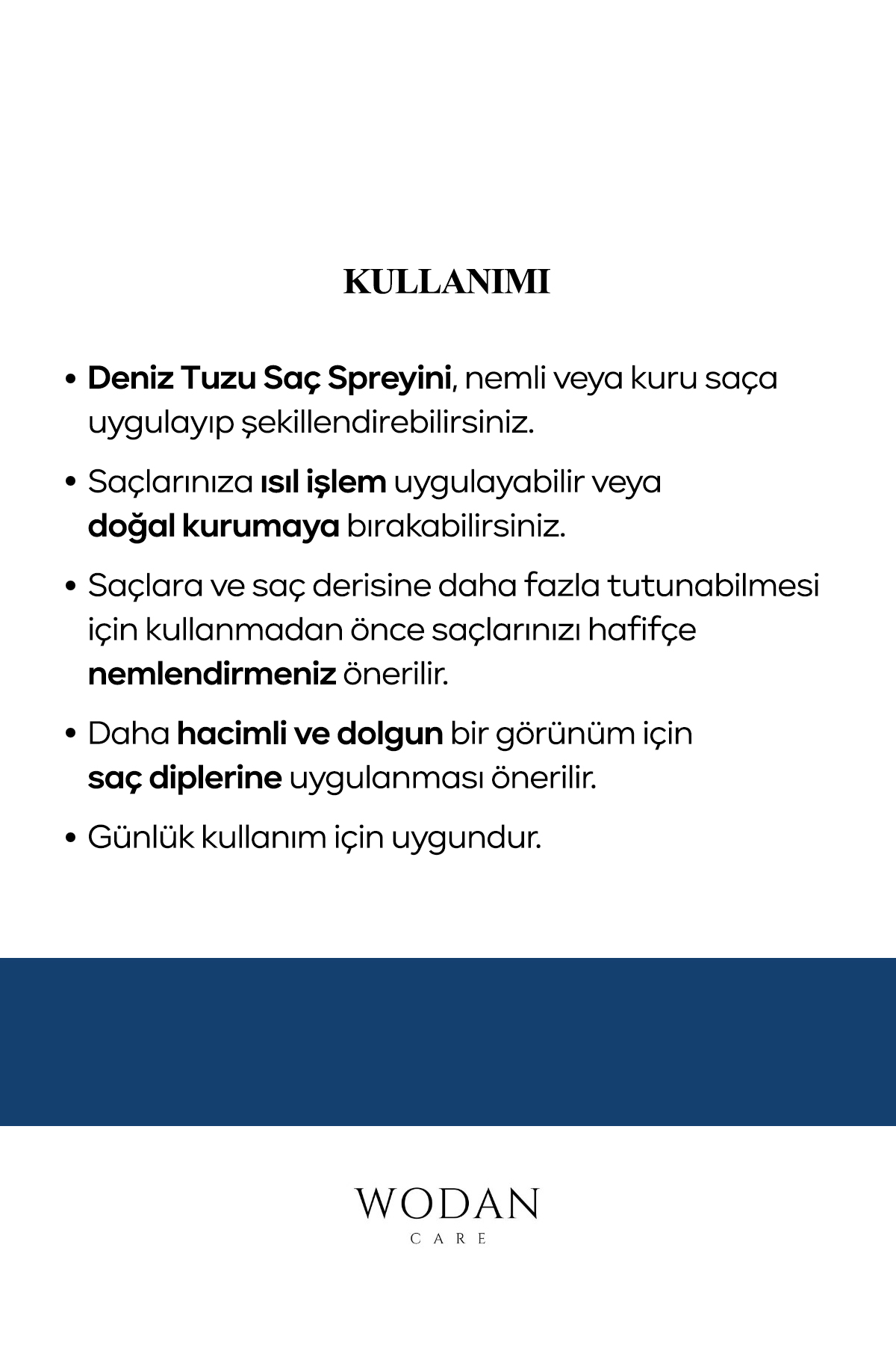- Deniz Tuzu Saç Spreyini, nemli veya kuru saça uygulayıp ş
